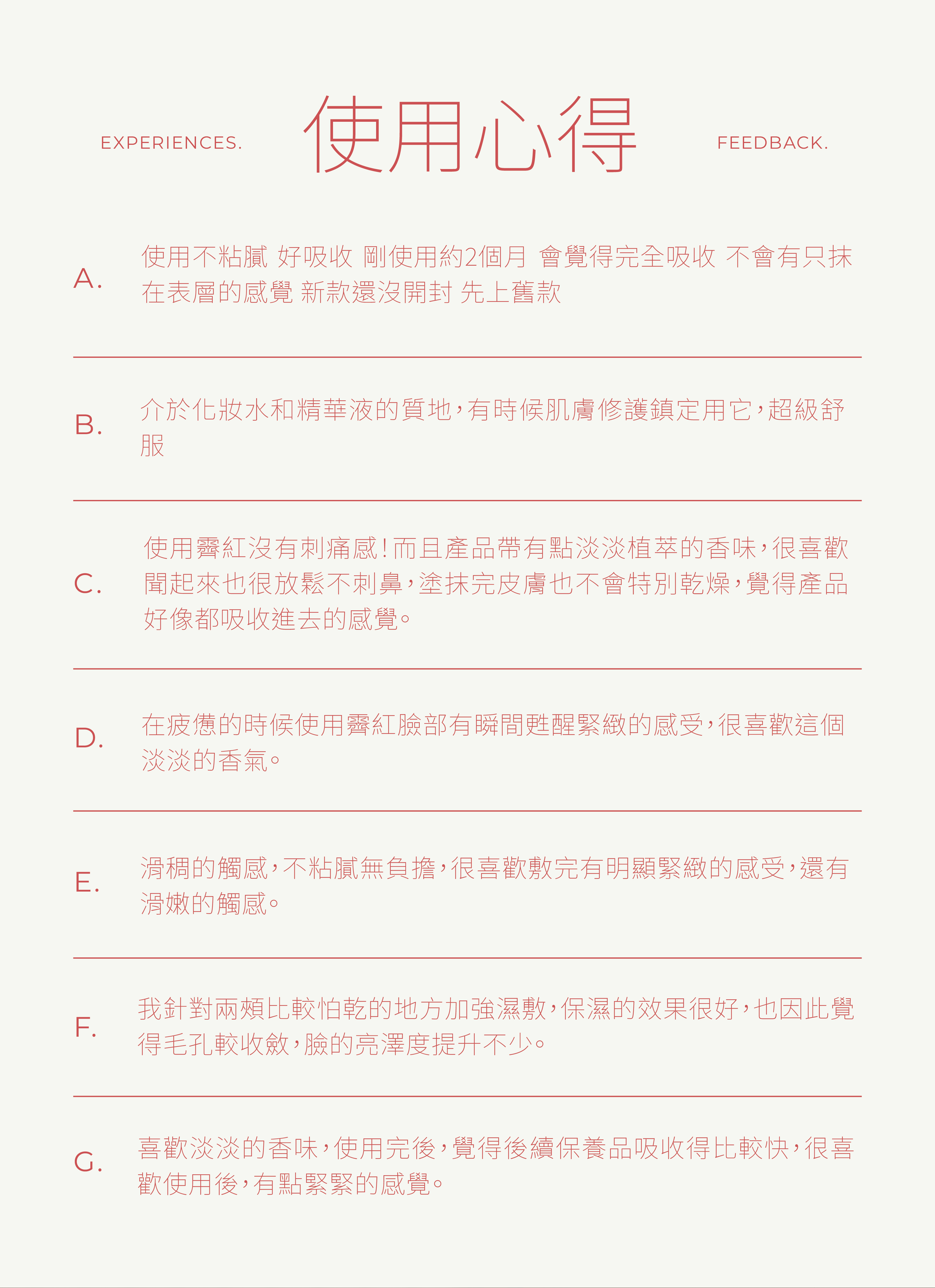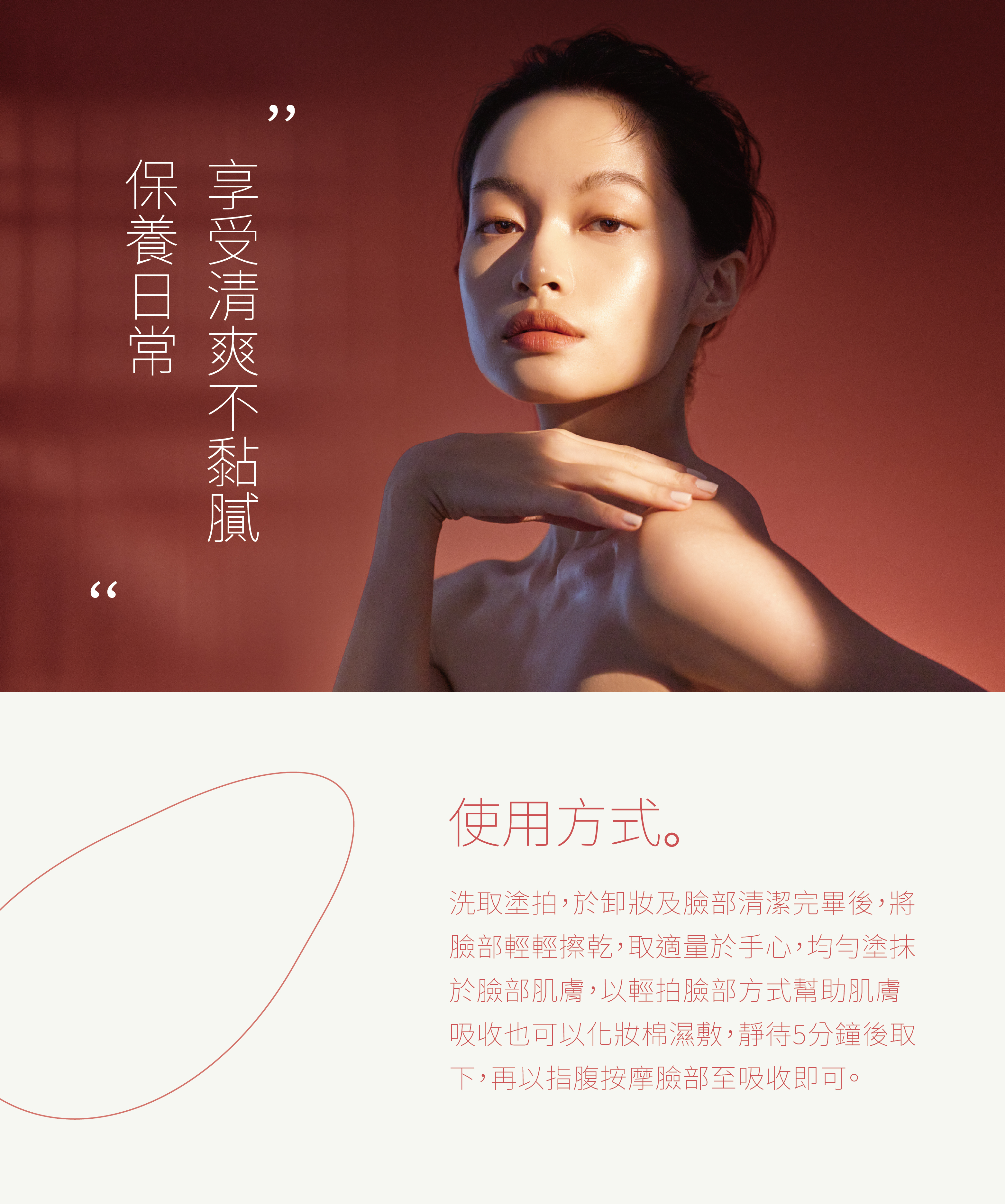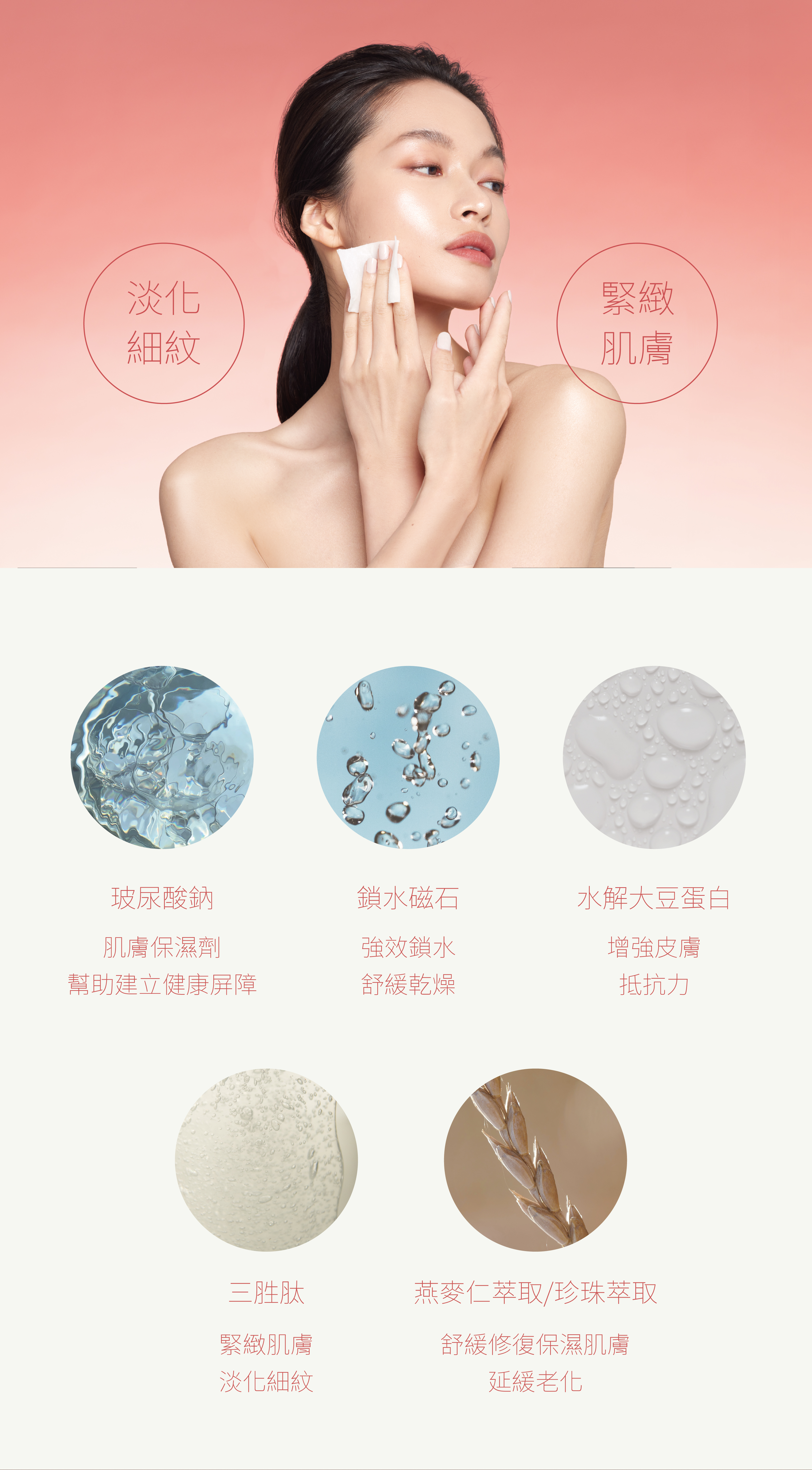 適用膚質:全膚質適用,特別推薦中乾性膚質、熟齡肌、敏弱肌; 容量:30mL