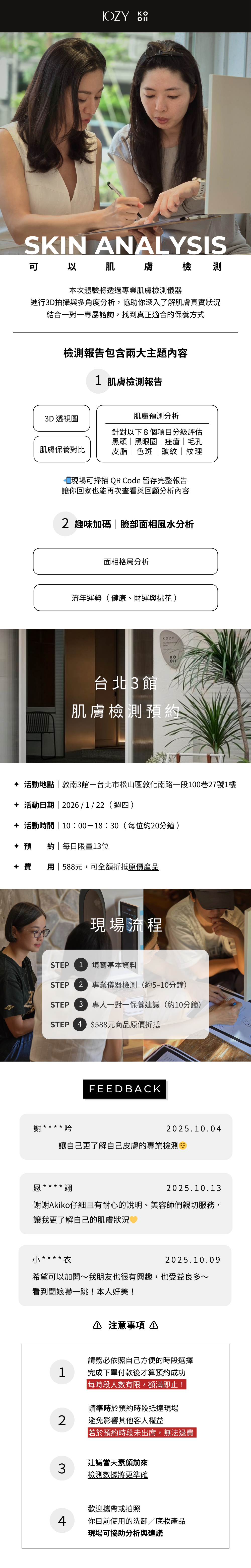 透過專業肌膚檢測儀+一對一保養諮詢,