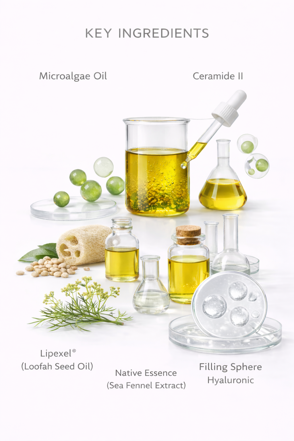 含多樣特殊脂類,為肌膚提供防護支持有助支持 神經醯胺與聚絲蛋白(Filaggrin) 的生成機制肌膚維持健康防禦狀態與透亮感