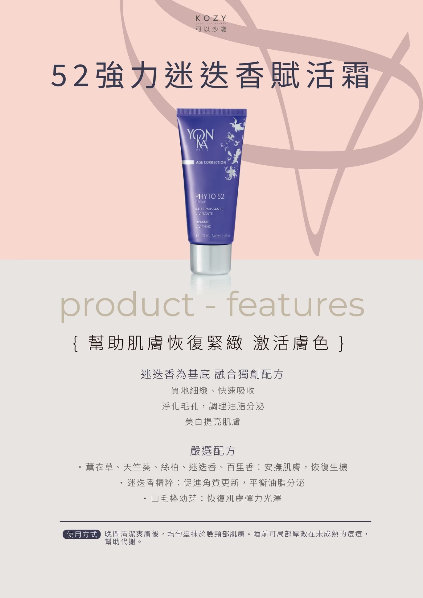 含迷迭香、山毛櫸幼芽、榛實果油、蘆薈、植物性甘油、雍卡五大精油配方、維生素E。
