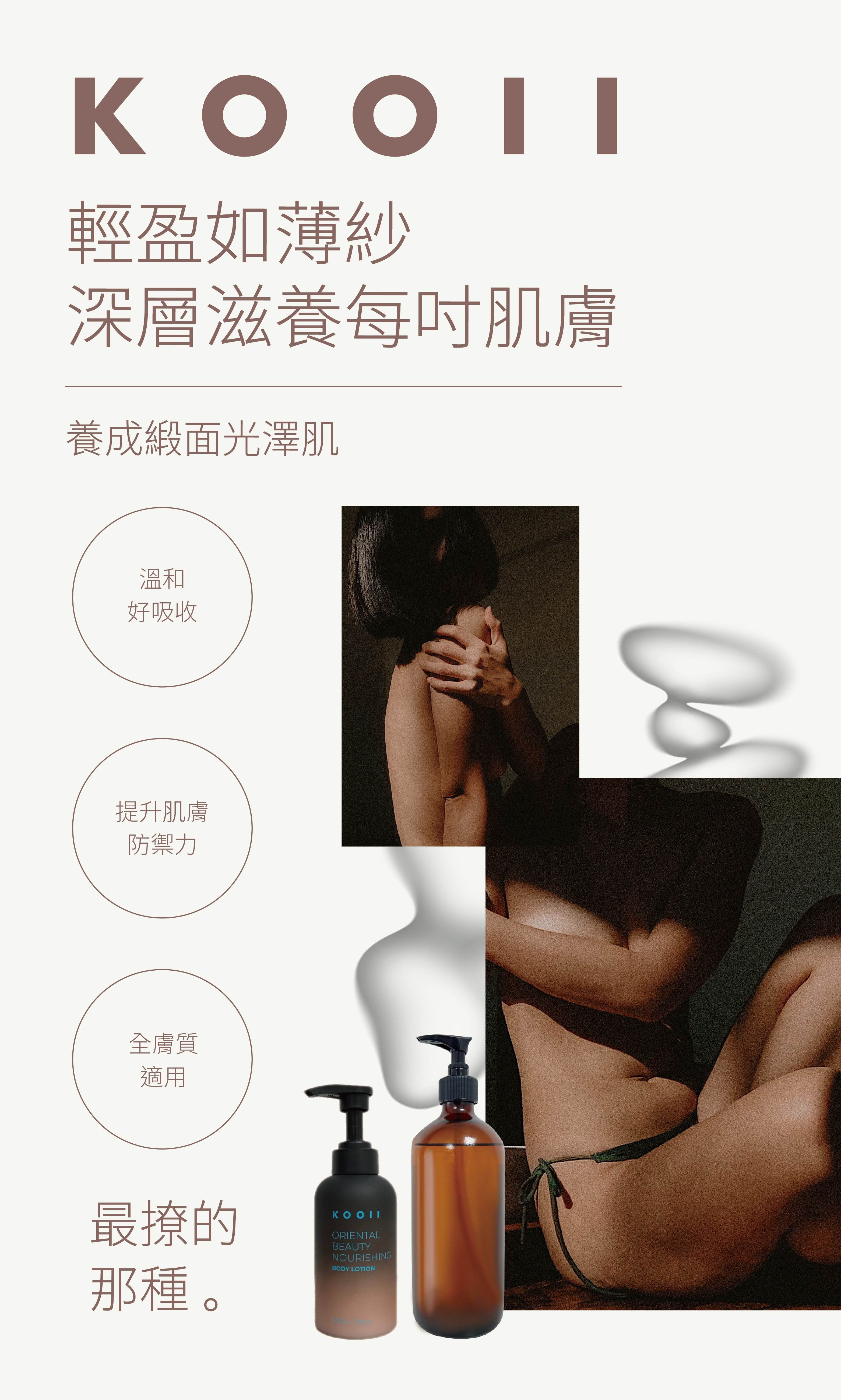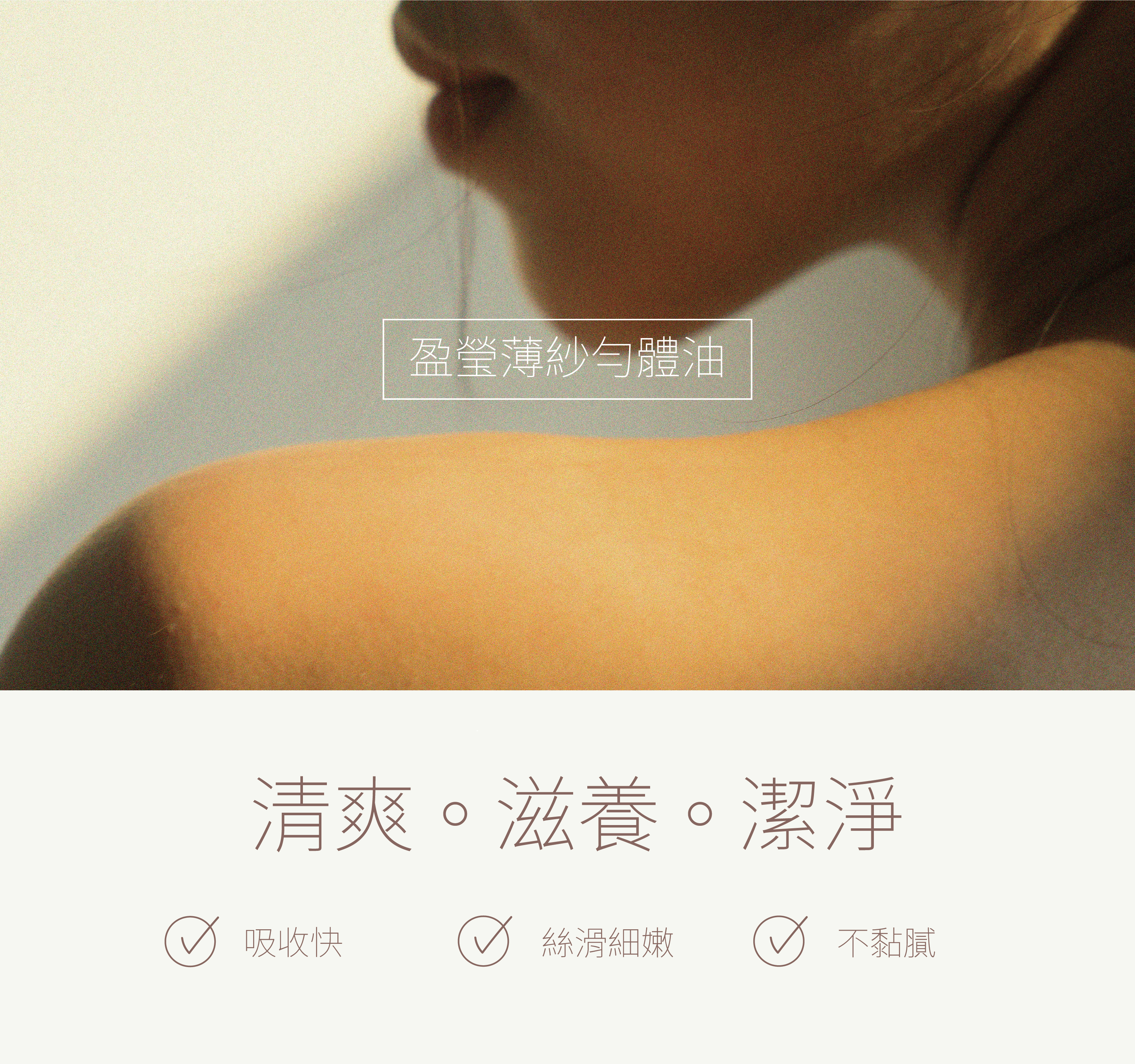 秋冬多加一層盈瑩泊紗勻體油,先油後乳更滋潤,彷彿身穿薄紗,肌膚發光不粘膩。